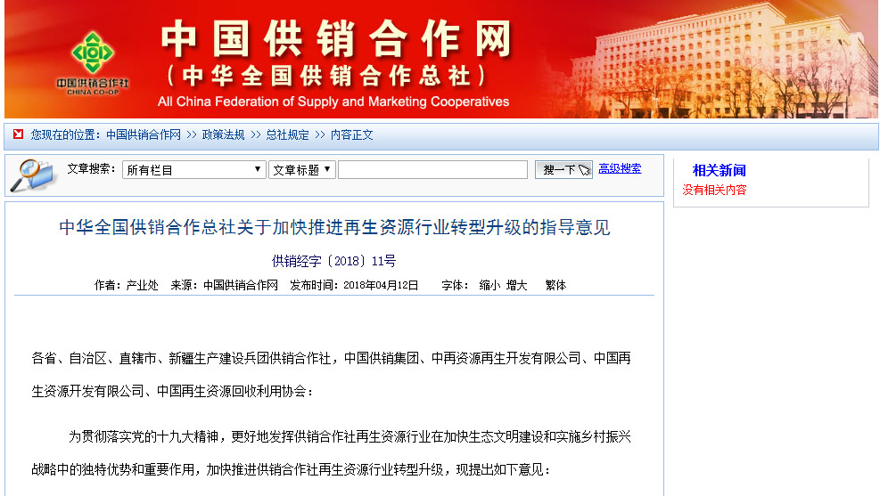 各省、自治区、直辖市、新疆生产建设兵团供销合作社,中国供销集团、中再资源再生开发有限公司、中国再生资源开发有限公司、中国再生资源回收利用协会: