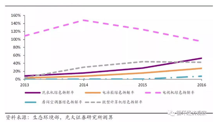 4)四机一脑绿色拆解率(绿色拆解率=拆解量/理论报废量)