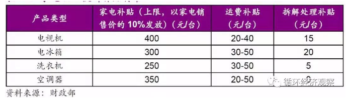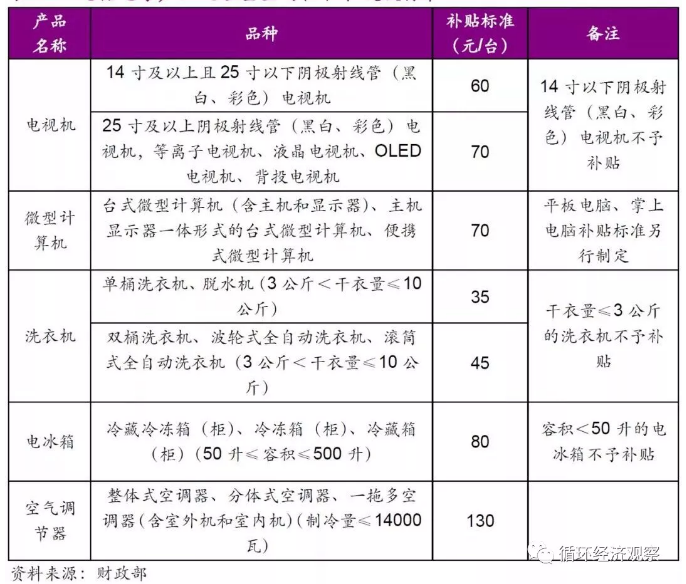(3)规范明确旧家电、消费电子产品回收和补贴标准——加速更新周期,完善商业模式;
