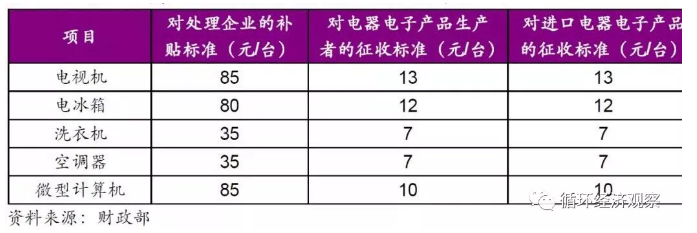 (6)废弃电器电子产品处置基金征收和使用管理制度,将“定额补贴”转为“年度浮动补贴”,由“清单内企业标准补贴”转为环境绩效的“差异化补贴”——完善商业模式。