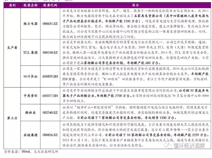 只涉及回收环节的上市公司都是电器电子产品的生产者或者零售商,对于他们来说,回收废电器的主要目的不是盈利,而是环保需求、政策要求或者客户诉求。