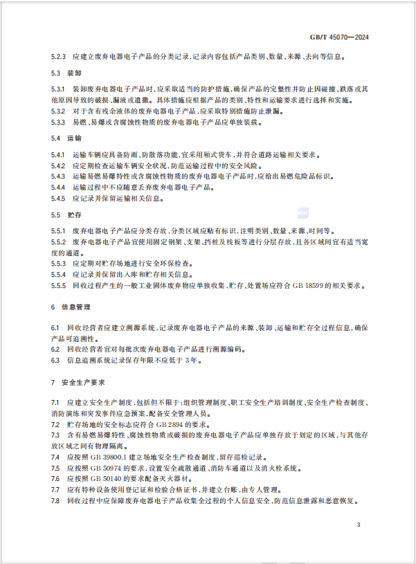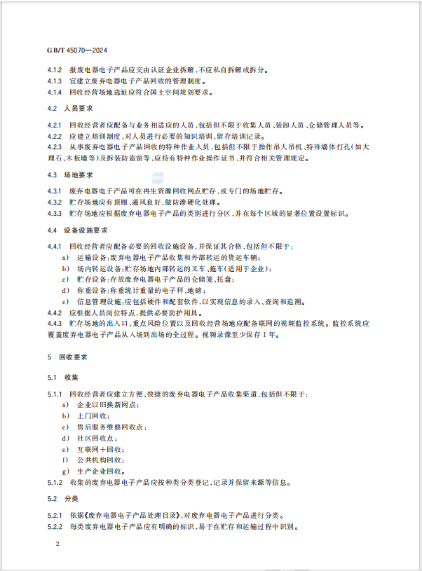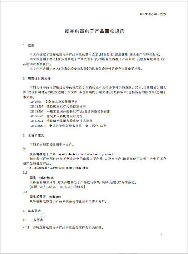 废弃电器电子产品回收规范 GB/T 45070—2024