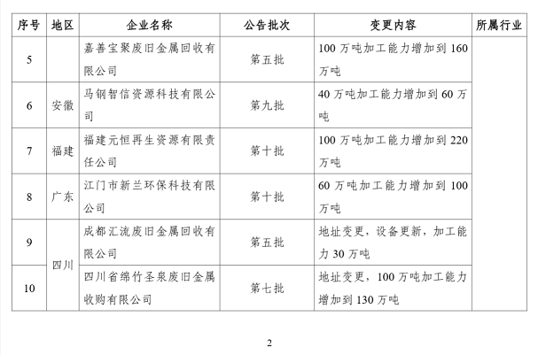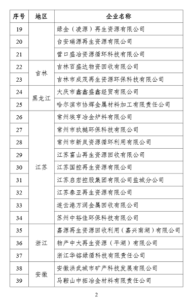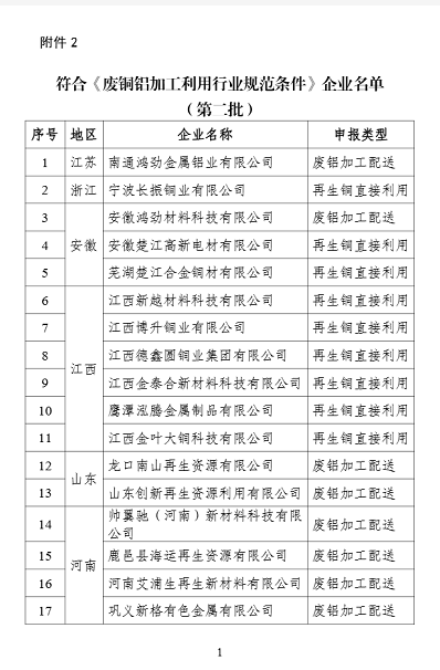 2. 符合《废铜铝加工利用行业规范条件》企业名单(第二批)