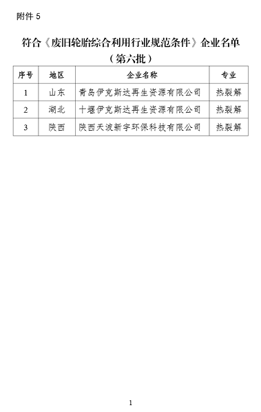 5. 符合《废旧轮胎综合利用行业规范条件》企业名单(第六批)
