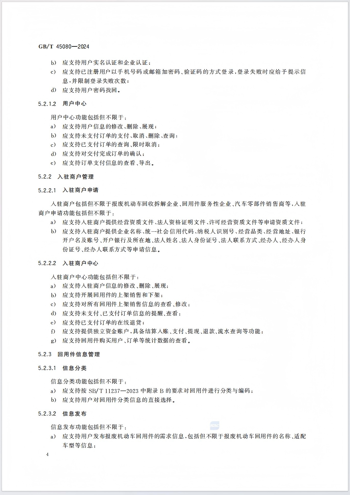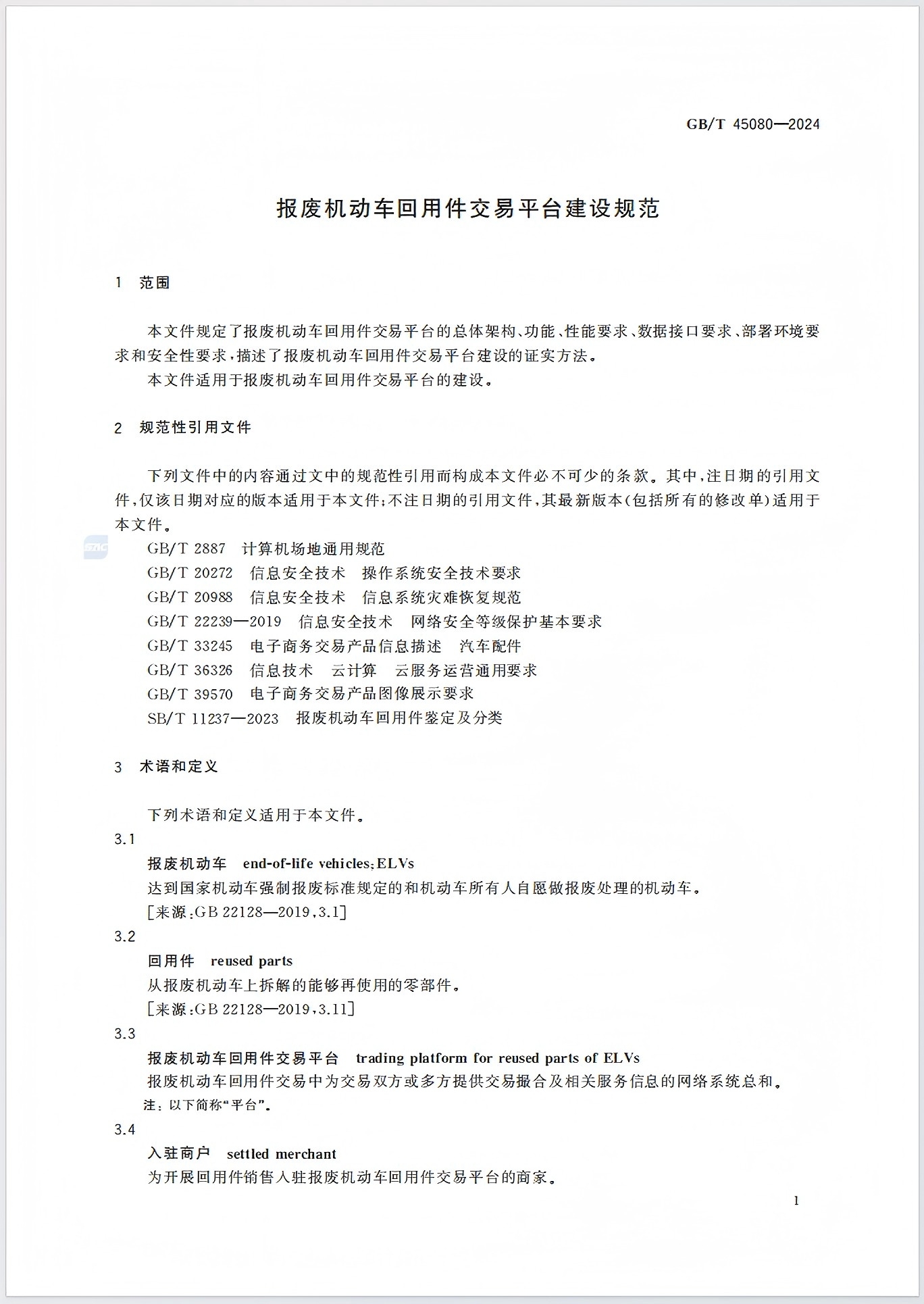 报废机动车回用件交易平台建设规范 GB/T45080—2024