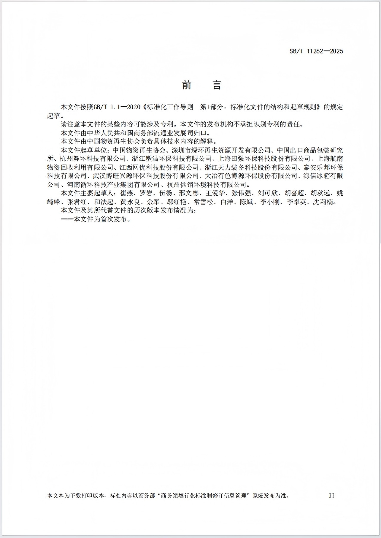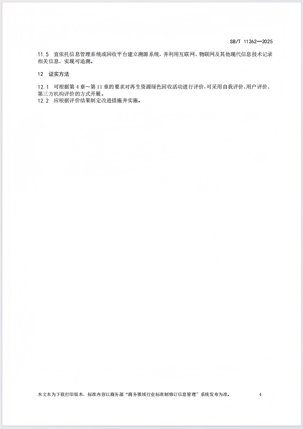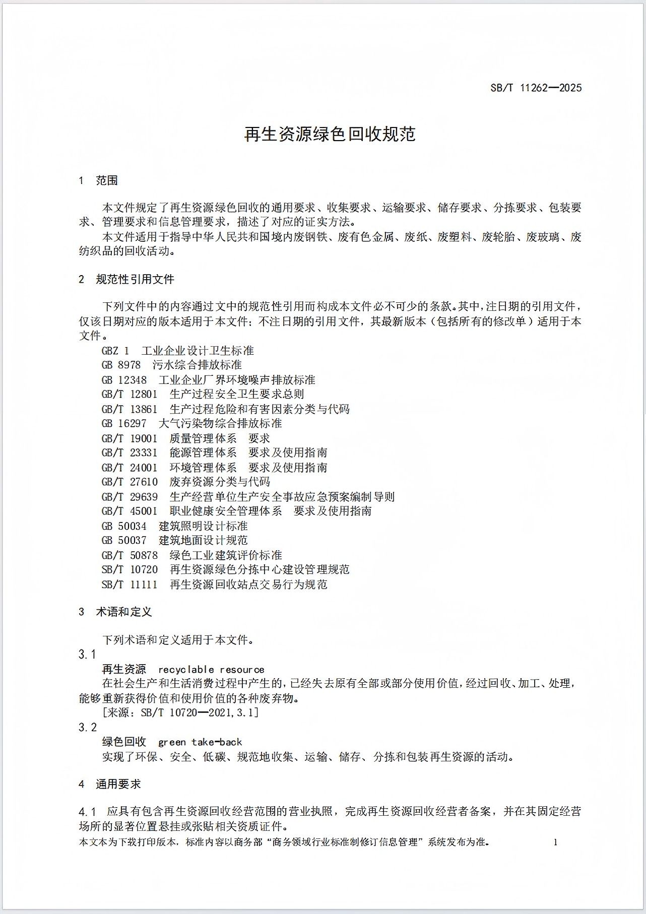 再生资源绿色回收规范 SB/T11262-2025