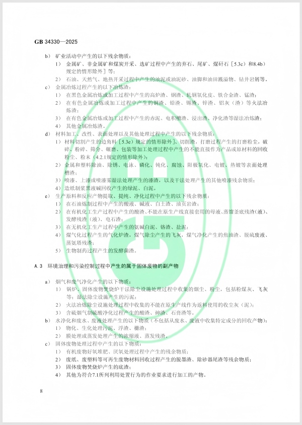 《固体废物鉴别标准 通则》(GB 34330-2025)。