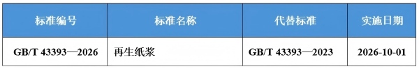 国家市场监督管理总局(国家标准化管理委员会)发布2026年第15号公告,批准发布《煤中全硫的测定方法》等303项推荐性国家标准和2项推荐性国家标准修改单,其中包括造纸领域国家标准《再生纸浆》,具体信息如下。