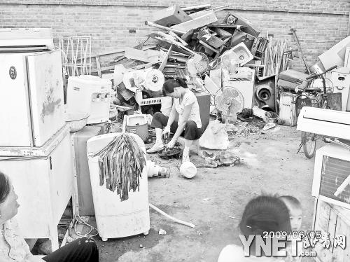 北京目前有四家正规的废旧电器处理企业,他们跟华新绿源一样吃不饱。据统计,北京市每年淘汰的废旧冰箱、电视机、电脑、洗衣机、空调、手机数量突破1000万台,其中手机600万台,但只有六分之一左右的废旧电器得到环保处理。