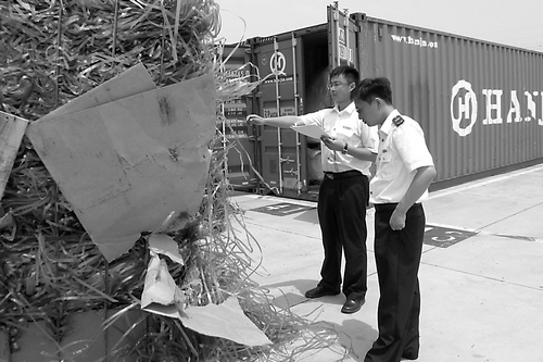 2011年11月,从我国香港进境的废塑料中发现了大量废旧渔网,属于国家明令禁止进口的固体废物。废弃渔网通常情况下会夹杂土壤、腐败的水生动植物等,卫生状况无法保证,加之制品中含有添加剂等成分,作为废塑料回收利用价值很低。2012年2月,从罗马尼亚进境的废塑料中发现了大量废墨盒破碎拆解件,属于电子垃圾,含有大量的重金属元素,并且外包装盒也具有不可分解性,一旦流入国内,将对我国土壤、水体、大气环境带来很大程度的破坏。2月底,在南非进境的废塑料中发现夹杂含有感光物质的胶片,属于严格限制夹杂物。感光材料废物中含有大量的卤化银,此外还含有大量的有毒有害物质,这些化学物质结构稳定,不易自然降解,如果处置利用不当,不但会对土壤、水体造成较大污染,而且会对人体造成危害。2013年2月,在美国进境的废塑料中发现了大量夹带泥土的废塑料软管,土壤因为可能含有细菌、线虫等微生物,可能造成难以预计的损失,属于法律明文规定的禁止进境物。