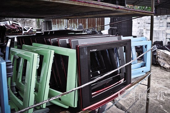 李旺发夫妇只是二手电器回收环节中的最低层,他们没有能力和条件对回收来的废旧电器和电子产品做任何处理,只是简单检查一下,还能用的就单独存放起来,卖给经营二手货的商家;不能用的,积攒到一定数量后,就卖给一个跑运输的老乡。“好像这些废品最后会一起运到汕头那边。很好卖的,他发了大财了。”
