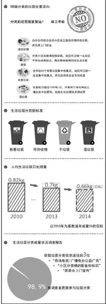 其中,集贸菜场垃圾分流和居民区厨余垃圾小分类日均达920吨,人均生活垃圾日处理量已从2010年的0.82公斤降至目前约0.7公斤,进入填埋场、焚烧厂等末端处置设施的垃圾处理量逐步减少。