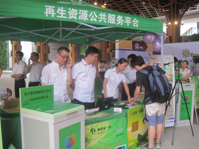 双卡工程通过借网建网,融合回收网络与商业网络资源,加快促进“循环消费”。以本市国美、永乐、苏宁等大型连锁家电卖场为重点,在家电销售网络、家电维修网络叠加电子废弃物回收功能,逐步设置电子废弃物回收箱,实现电子产品销售、维修、回收的全链条服务。同时,对接百联、农工商等商业企业会员卡以及光大银行阳光阿拉环保卡,实现回收积分兑换,形成“阿拉环保卡”积分兑换激励模式,以“绿色回收”带动“绿色消费”。