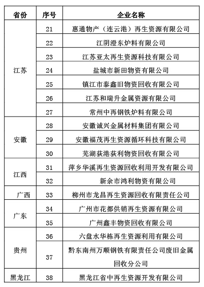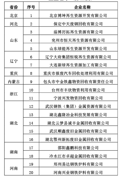 符合《废钢铁加工行业准入条件》企业名单第三批