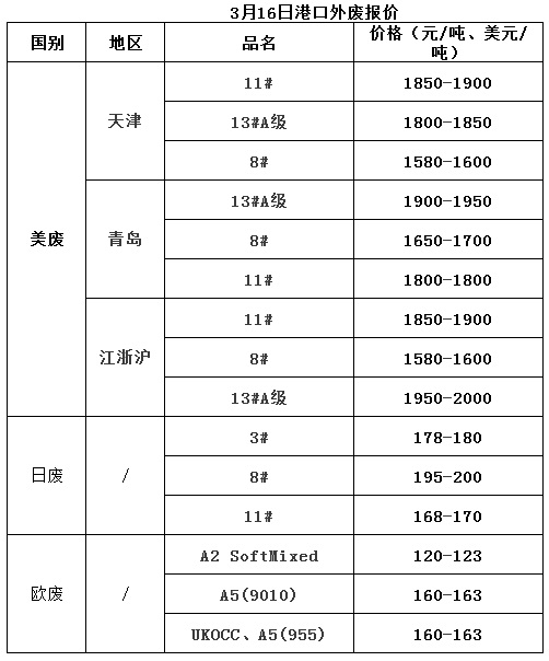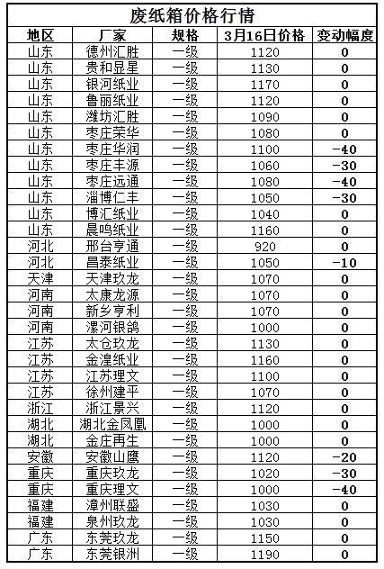 今日国废黄板纸市场跌势未止,市场到货量充裕,供大于求,纸厂根据需求下调废纸采购价格。河北昌泰纸业及永新纸业采购价格下调10-30元/吨,一级价格1050元/吨左右。山东地区淄博仁丰纸业、枣庄远通纸业、丰源纸业、华润纸业采购价格下调20-30元/吨,一级采购价格1050-1100元/吨左右。安徽山鹰纸业采购价格下调20元/吨,一级采购价1120元/吨。重庆地区理文造纸采购价格下调20-40元/吨,一级采购价格降至1000元/吨。