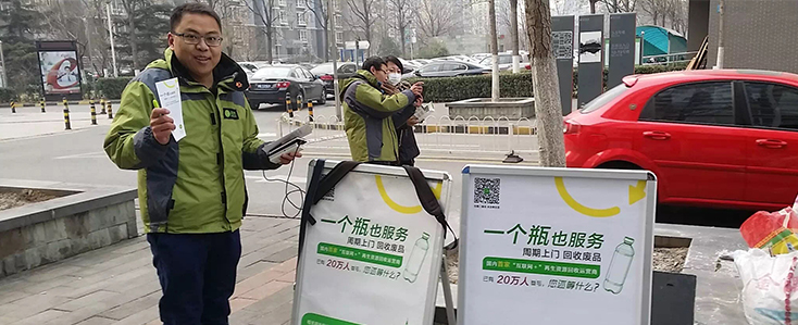 住在闵行区莘庄镇的居民们,用微信预约“再生活”的回收服务,回收人员就能在约定时间上门回收废品,非常省事儿。