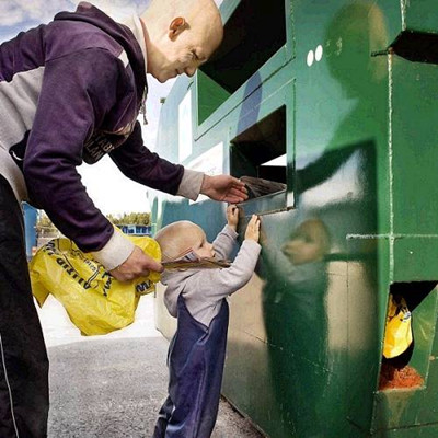 瑞典在培养国民垃圾分类意识上足足花了一代人的时间。对于那些偷懒不愿意去分类的人,瑞典政府重新设计垃圾容器来提高乱扔垃圾的难度,例如,把扔瓶罐的容器口设计成小孔状的,把扔硬纸盒和纸板箱的容器口设计成信封状的。这样一来,大大减少了乱扔垃圾的现象。如今,每个瑞典人都在实现着他们的环保梦想,即通过大规模的回收创造一个高效有益的自然体系,一个“人人都回收”的社会。