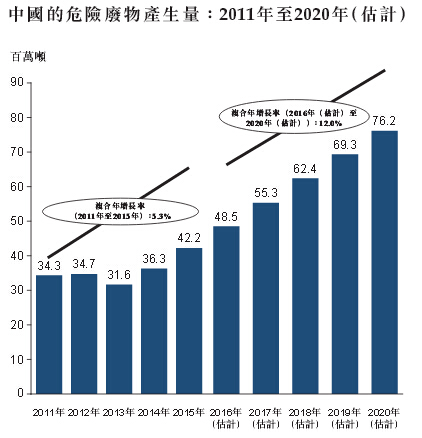 根据弗若斯特沙利文的资料,预期中国政府将于2016年至2020年的十三五规划期间继续增加环境保护投资,而危险废物处理行业亦预期会保持迅速增长。