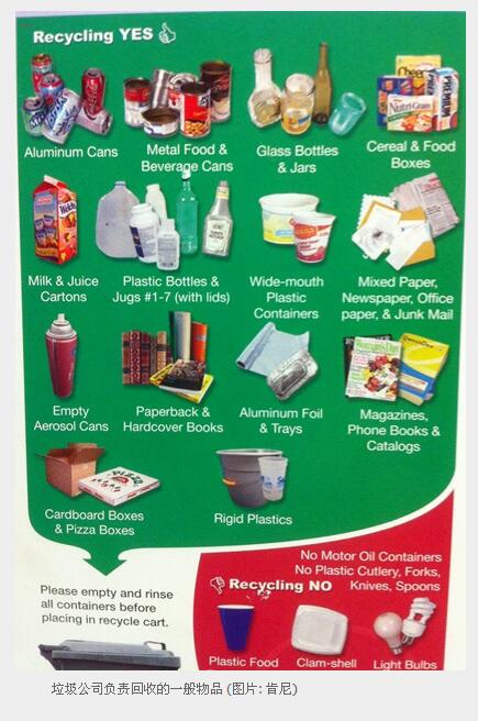 今天就为大家介绍一般美国家庭如何处理日常生活垃圾吧。联邦政府为了保证我们的子孙后代可以继续在一个清洁美好的环境下生活,大力推动全美家庭将家中废物垃圾尽量回收利用以保护我们的环境。美国各州对于处理垃圾回收都有各自不同的要求和法规,但大同小异。我就以美东大华府附近地区作为例子向大家介绍一下吧。