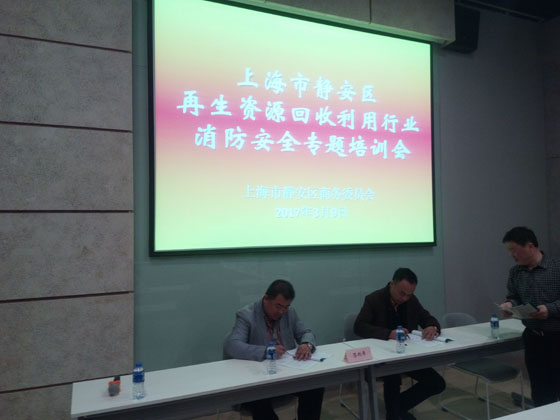 2017年3月9日举办了静安区商务委主办的再生资源回收行业消防安全培训工作会议。全区30多家企业派代表参加了培训。