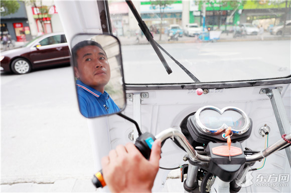 网约工罗奇驾驶垃圾回收车。