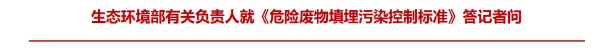 近日,《危险废物填埋污染控制标准》(GB18598-2019)(以下简称《标准》)发布实施。生态环境部有关负责人就《标准》的修订背景、思路等内容,回答了记者的提问。