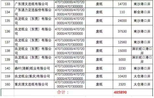共计废纸核定进口总量为