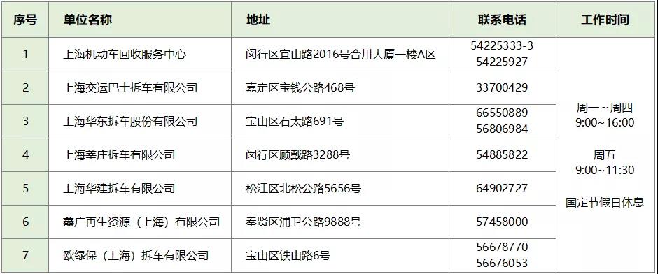 (七)补贴申请受理点 补贴申请受理点共7个,暨本市商务管理部门认可的7家机动车拆解企业,详细地址及联系方式见下表: