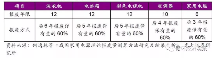 测量方法:按社会保有量系数法测算。例:洗衣机报废年限12年,报废方式是后6年报废保有量的60%,那么: