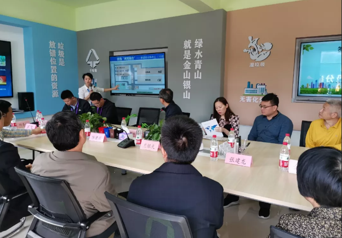 考察团一行先后听取了田强环保董事长胡喜超关于“两网融合”垃圾分类的专题汇报。介绍了中转站“两网融合1+6+N”功能区运营情况,观看了垃圾分类纪实宣传片并参观考察了“两网融合”中转站各个功能区场地设置情况。胡喜超董事长介绍说,在奉贤区”两网融合”落地方案中,公司从“中国梦、环保梦;低废奉城人人梦”理念出发,致力于不断探索垃圾分类新模式,循环经济发展新模式。从前端回收、过程中转、宣传服务等环节一个链条全部完成,利用五个“一”,做好垃圾分类宣传工作。让老百姓分类好的垃圾有去处,让垃圾变成钱或生活日用品,同时为资源再利用、降低碳排放、保护环境做出了实质性贡献。
