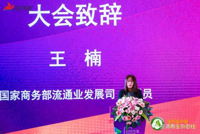 商务部流通业发展司调研员王楠在致辞中表示,2018年,我国再生资源回收总量规模扩大的同时,再生资源回收模式在不断创新,如:“定点、定时、定车”不落地新型回收模式,传统废纸回收与互联网行业高效结合,互联网+便捷回收设备实现智能分类回收等,这些新模式有效提高了回收效率,促进了线上线下交易融合互动。党的十九大提出我国经济已由高速发展阶段转向高质量发展阶段,绿色高质量发展成为时代发展的“主旋律”。再生资源回收利用行业必须要抓住新时代经济社会发展的趋势和特点,主动融入新时代、进入新阶段、做出新贡献。