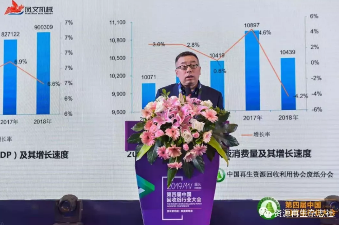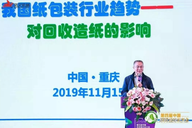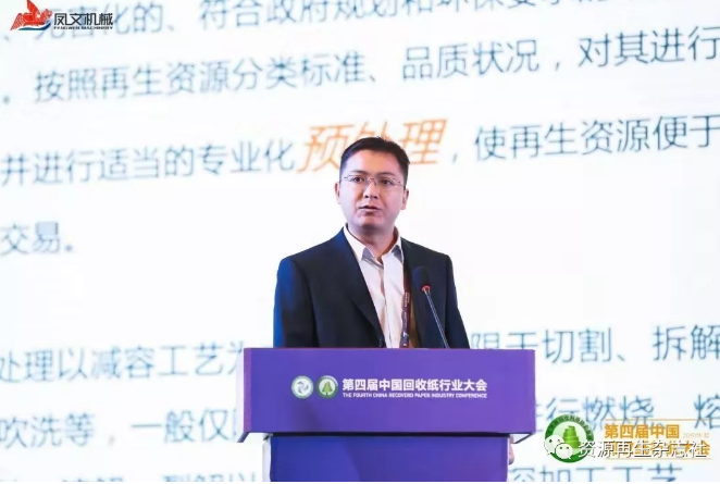 中国再生资源回收利用协会副会长兼秘书长潘永刚在致辞时说,今年以来全球经济增速放缓,国际经济形势复杂多变,内外消费压力进一步加剧,国内造纸行业在本轮经济下行中也遭遇了市场冷冬,另外,面对进口废纸政策为国内回收纸行业带来的利好预期和经济发展放缓造成的需求相对不足,回收纸行业在过去的两年里一直在震荡中度过,企业在诸多不确定中经受着来自政策和市场的双重考验。与此同时,在垃圾分类全面开展以来,一方面我们看到政府规范行业管理为行业发展带来的契机,同时我们也清醒地认识到传统企业必须完成经营理念和模式的蜕变才能实现长远可持续发展。在体系重构过程中,很多实力雄厚的环境服务公司和环卫企业进入到回收前端开始整合或新建与垃圾分类相协同的组织化、规范化程度都很高的新回收体系,这种新势为传统回收企业带来了巨大的挑战。面对经济发展新常态和新的外部政策环境,尚处于成长期的中国回收纸行业该如何把握政策与市场机遇,以自身动力为引擎实现跨越式发展,已成为全行业需要共同面对的课题。