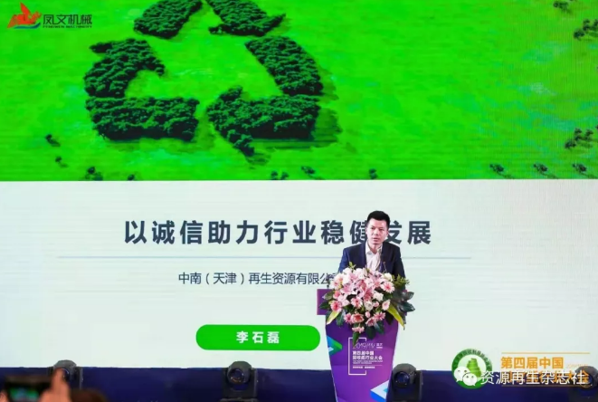 中南(天津)再生资源有限公司新项目开发部经理李石磊在题为《以诚信助力行业稳健发展》的演讲中表示,作为再生资源回收企业,一定要发扬契约精神和工匠精神,诚信经营,我们有责任确保废纸回收企业不会产生二次污染,所有垃圾都能在有资质的企业进行无公害处理。