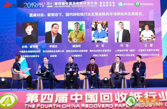 在结束了上午的论坛后的,进行了圆桌对话环节,由中国再生资源回收利用协会废纸分会秘书长唐艳菊主持。四川讯源纸业有限公司总经理李国友,常熟百纳再生资源有限公司董事长唐国明,亳州龙利再生资源回收有限公司董事长宋军,上海城投环境(集团)资源利用公司总经理邱铤,中国再生资源开发有限公司深圳分公司总经理王慧与参会代表一起,围绕“新常态下,国内回收纸行业发展面临的市场挑战和发展路径”这一话题展开了探讨。