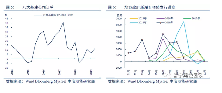 而从基建来看,如我们之前分析,政策端总体对基建友好,特别是地方政府专项债可能提前下达,将明显提振明年初基建需求。我们通过微观调研可以发现,当前基建项目并不缺,今年八大基建公司的订单为两位数正增长,但众多项目欠缺资金,一旦地方政府专项债在明年年初提前下放,则基建对钢材的需求将重演今年的节奏。