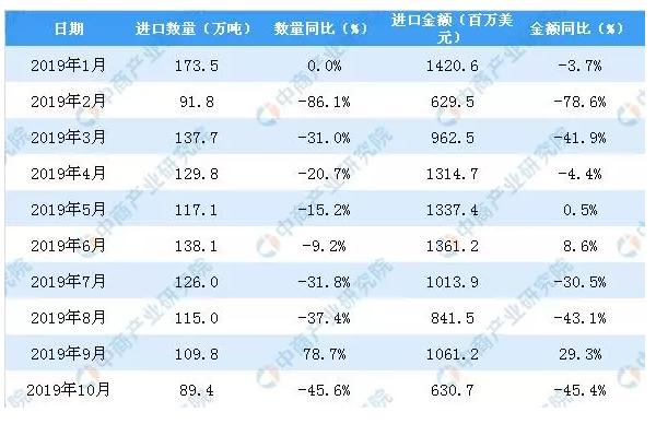 最新数据显示,2019年10月中国固体废物进口量为89.4万吨,同比下降45.6%。