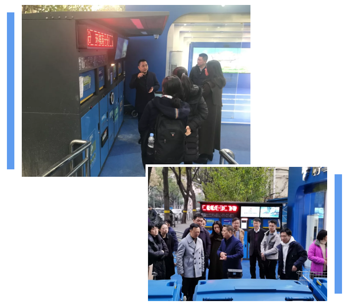 重庆环卫集团张董一行先后前往漕河泾两网融合示范点“净空间”、东泉小区实地察看。“净空间”是城投环境在徐汇区漕河泾街道打造的首家“两网融合”示范点,张董一行听取城投环境关于该点位“人工+智能”的回收模式介绍以及智能交投机的使用演示,对再生资源收集品类、前端收运的方式、资源回收的系统平台以及全品类可回收物的分拣、打包等工艺流程进行详尽了解。在东泉小区,张董一行对社区垃圾四分类投放情况进行实地考察,重点了解湿垃圾破袋情况,听取小区居民参与垃圾分类工作的推进现状,从中与重庆社区垃圾分类进行对比,汲取先进经验。