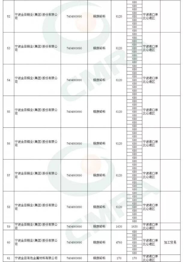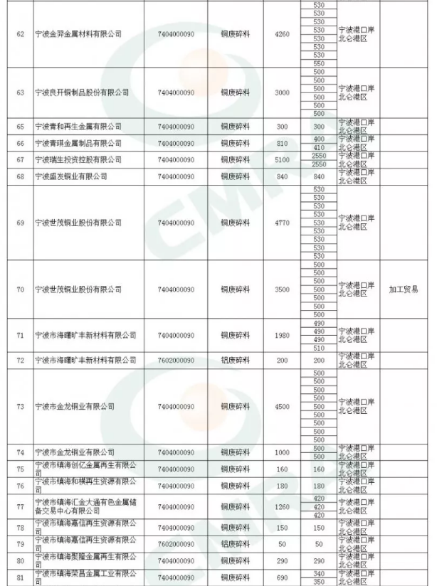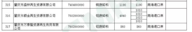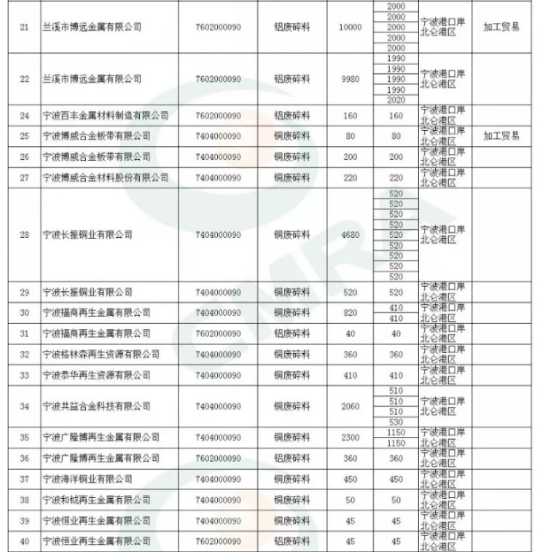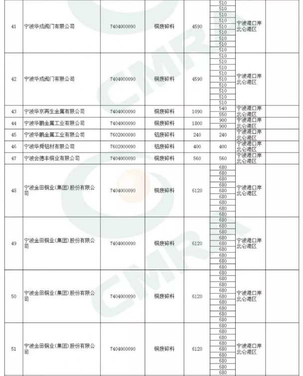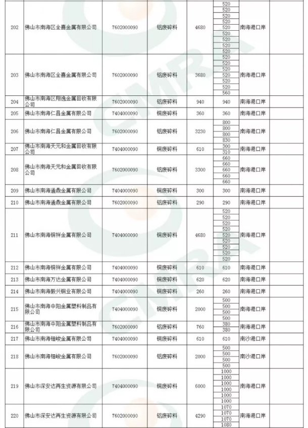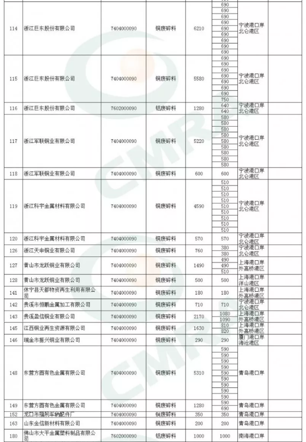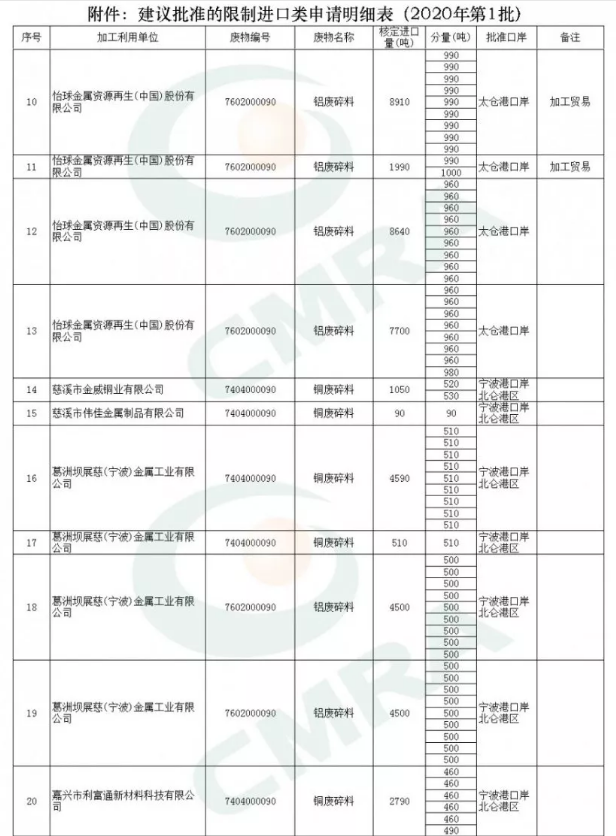 2020年第一批铜铝废碎料限制进口类申请明细表