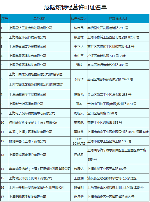 上海危险废物经营许可证名单