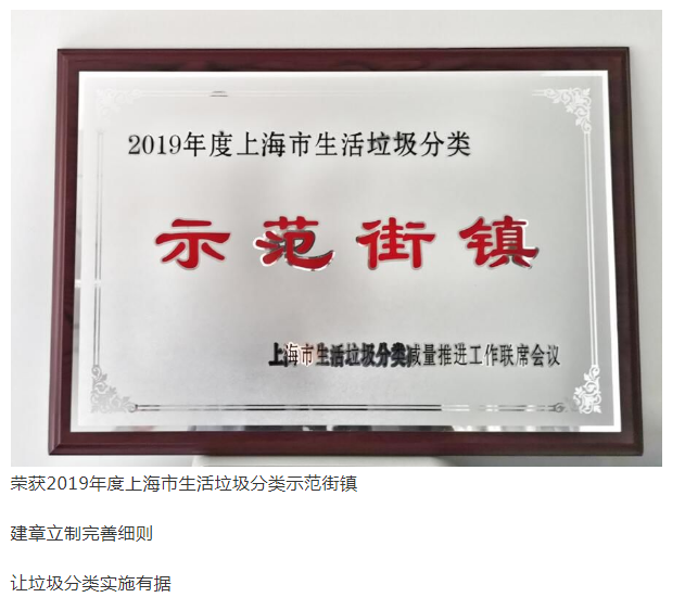 同时,街道还全面完善健全两网融合可回收体系,实现月回收1000吨以上全品类可回收物的减量计划,并成功创建2019年上海市第一批生活垃圾分类示范街镇。