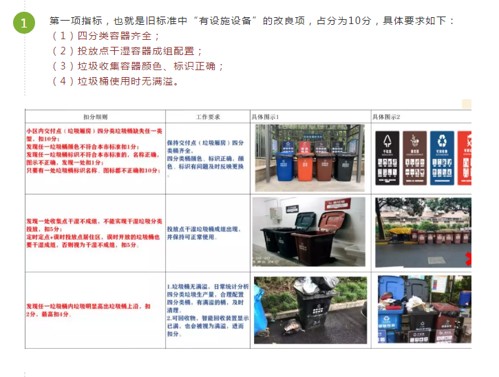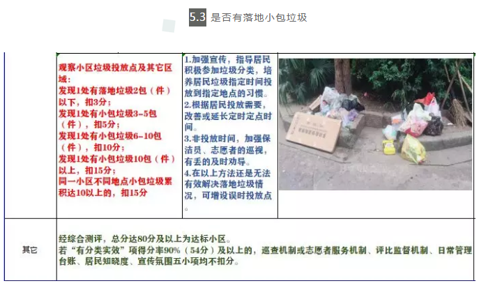 在新标准中,满分100分,总分达到80分以上的为达标小区。在本份攻略中,红字是扣分的细则,蓝字是相对通俗易懂的工作要求,大家还可以配合示意图结合理解。