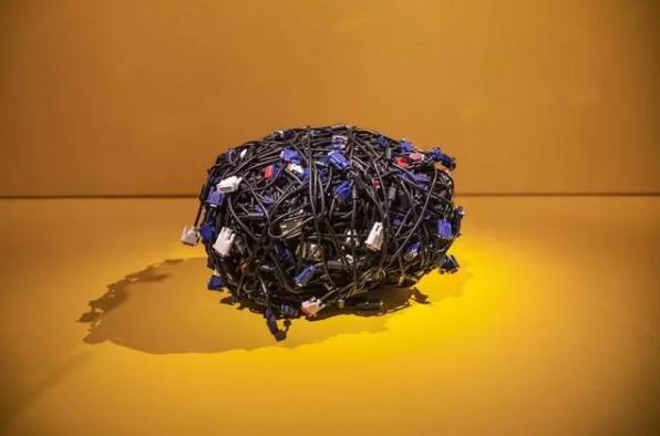 这个艺术造型名为“暂停”,是旧金山亚洲艺术博物馆的新展品,艺术家Jean Shin利用湾区的电子垃圾,打造了一个禅宗风格的类日式岩石花园,目的是为了获得自然的灵感,为沉思者提供精神环境。博物馆当代艺术和项目助理馆长马克·迈耶说:“归根结底,暂停是一种现代技术的安装和使用,但没有电力、Wi-Fi、闪光灯、移动图像或声音。”这种脱节意味着在那,花点时间放慢脚步,思考现代科技对生活意味着什么。”