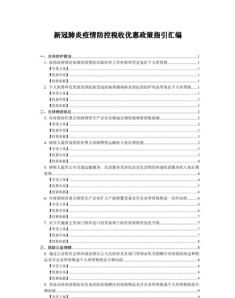 新冠肺炎疫情防控税收优惠政策指引汇编