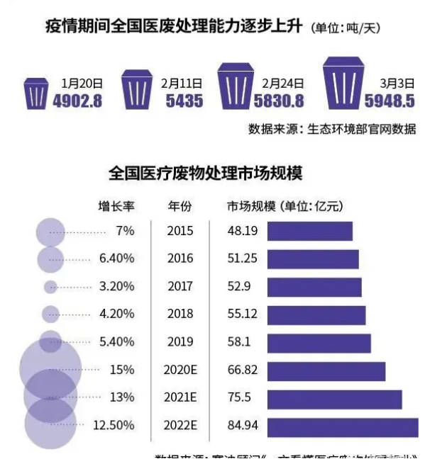 压力之下,整个医废处理产业在短时间内被调动了起来,紧急扩大了医废处理产能。