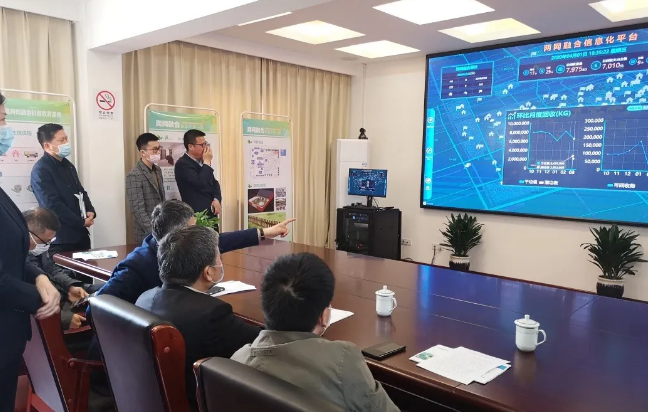 随后调研组一行查看了我镇的两网融合智能化数据系统。通过观看系统平台实时数据反馈,对我镇的两网融合开展情况有了进一步的了解。同时在参观过程中调研组一行就数据平台的各项数据标识内容向第三方载盛公司负责人进行询问,详细了解这个平台的作用。