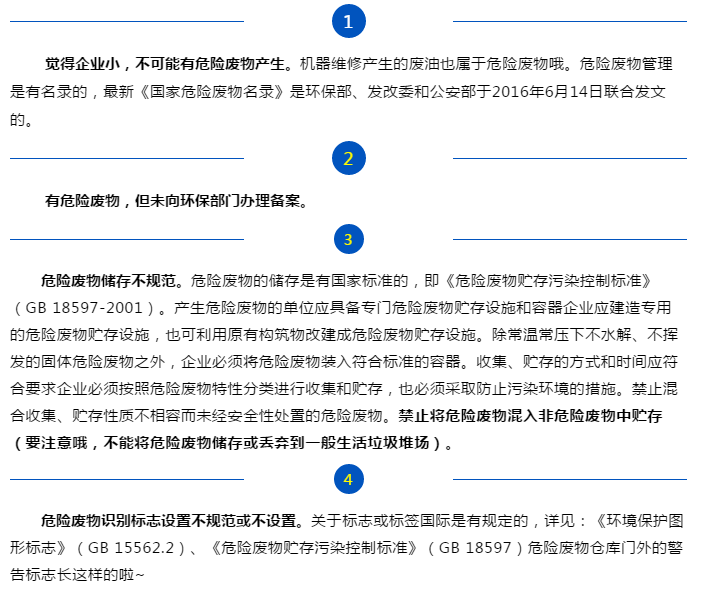 5) 企业需要有符合规定的标签和标识,不得擅自倾倒、堆放危险废物;