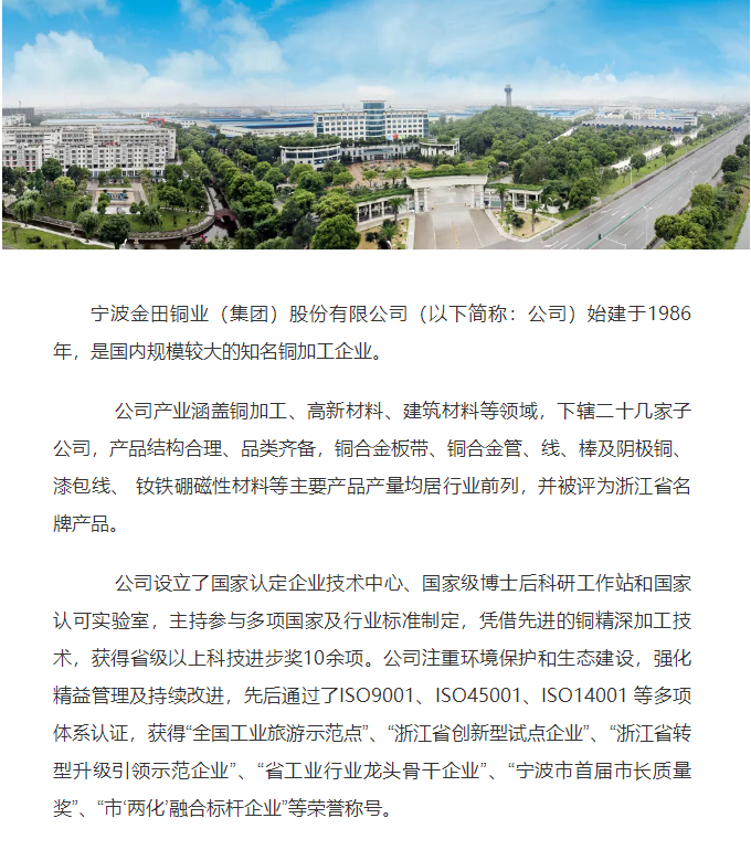 热烈祝贺再生资源行业百强企业第一名金田铜业成功上市