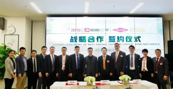 ▲ 京东拍拍、陶氏公司和金发科技战略合作签署仪式
