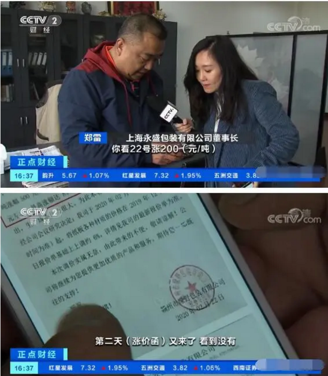 上海永盛包装有限公司董事长郑雷:你长期的话,哪怕再亏也好,价格没有确定之前,你都要保证供货,保证为客户服务。