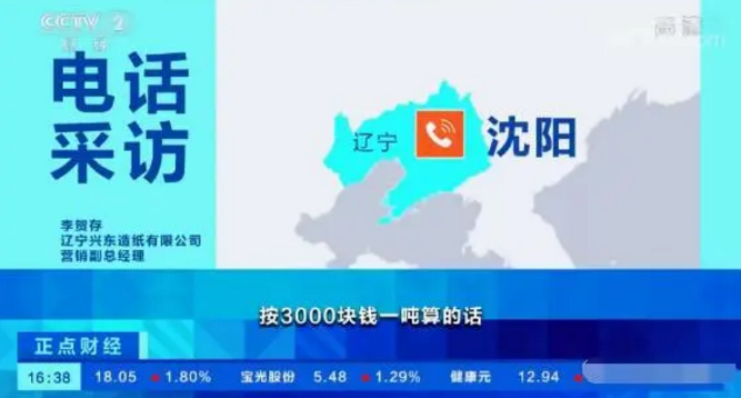 辽宁兴东造纸有限公司营销副总经理李贺存:按3000块钱一吨的算的话,涨100块钱算3%。就是玖龙的瓦纸降到2580-2600元/吨,好几年没有达到这个水平了。